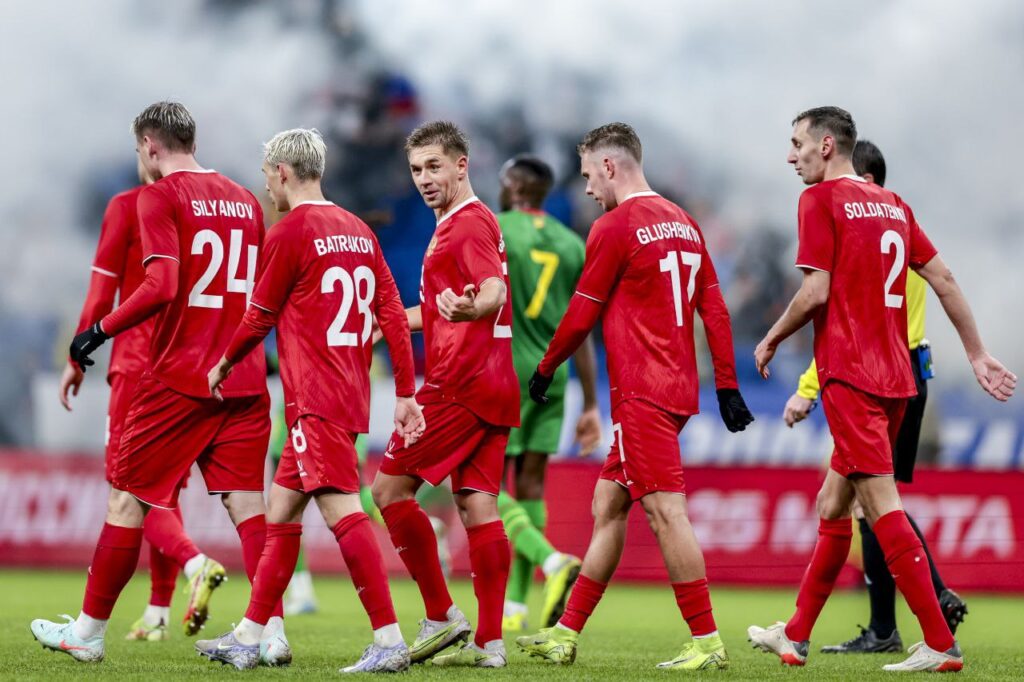 Защитник Александр Солдатенков вышел в стартовом составе сборной России и на 20 минуте получил желтую карточку. Нападающий Иван Сергеев начал матч в запасе и появился на поле на 65 минуте.