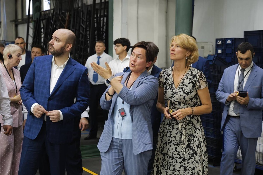 Так, на площадке крупного предприятия по производству сельскохозяйственной техники, Вячеслав Федорищев и Оксана Лут осмотрели цеха лазерной резки и гибки, резки профиля и трубы, механической обработки, пластиковых изделий, сварочный, сборочный, электромеханический и другие цеха, ознакомились с модельным рядом самоходных опрыскивателей-разбрасывателей «Туман».