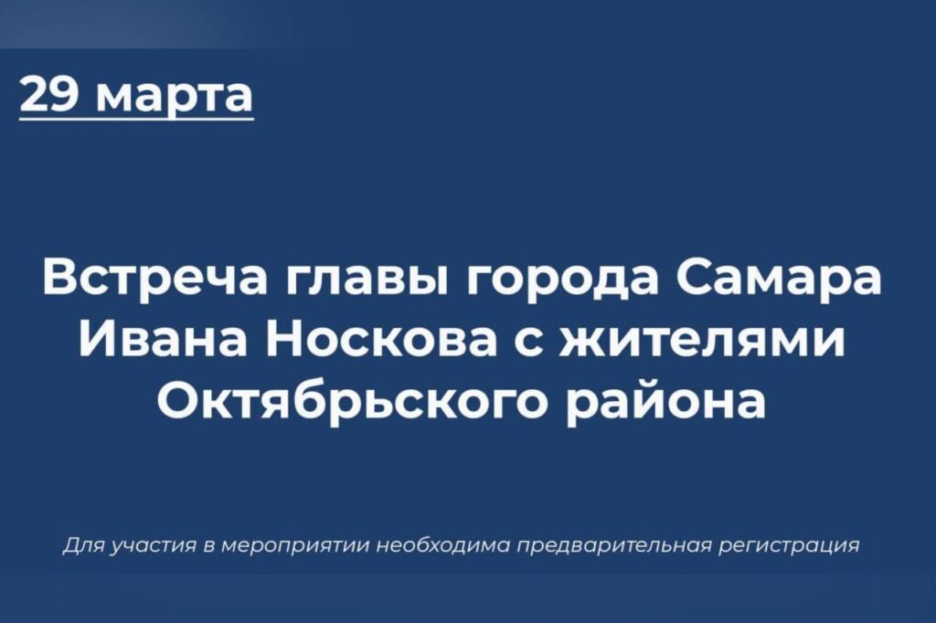 В субботу, 29 марта, пройдет рабочая встреча главы Самары Ивана Носкова с жителями Октябрьского района. Об этом сообщили в городской администрации.