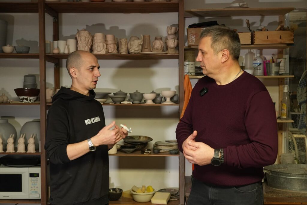 В числе пространств, с которыми познакомился глава города — мастерская художника Дмитрия Пирога (Горшкова), гончарная мастерская, студия-мастерская самарского бренда вязаных сумок.