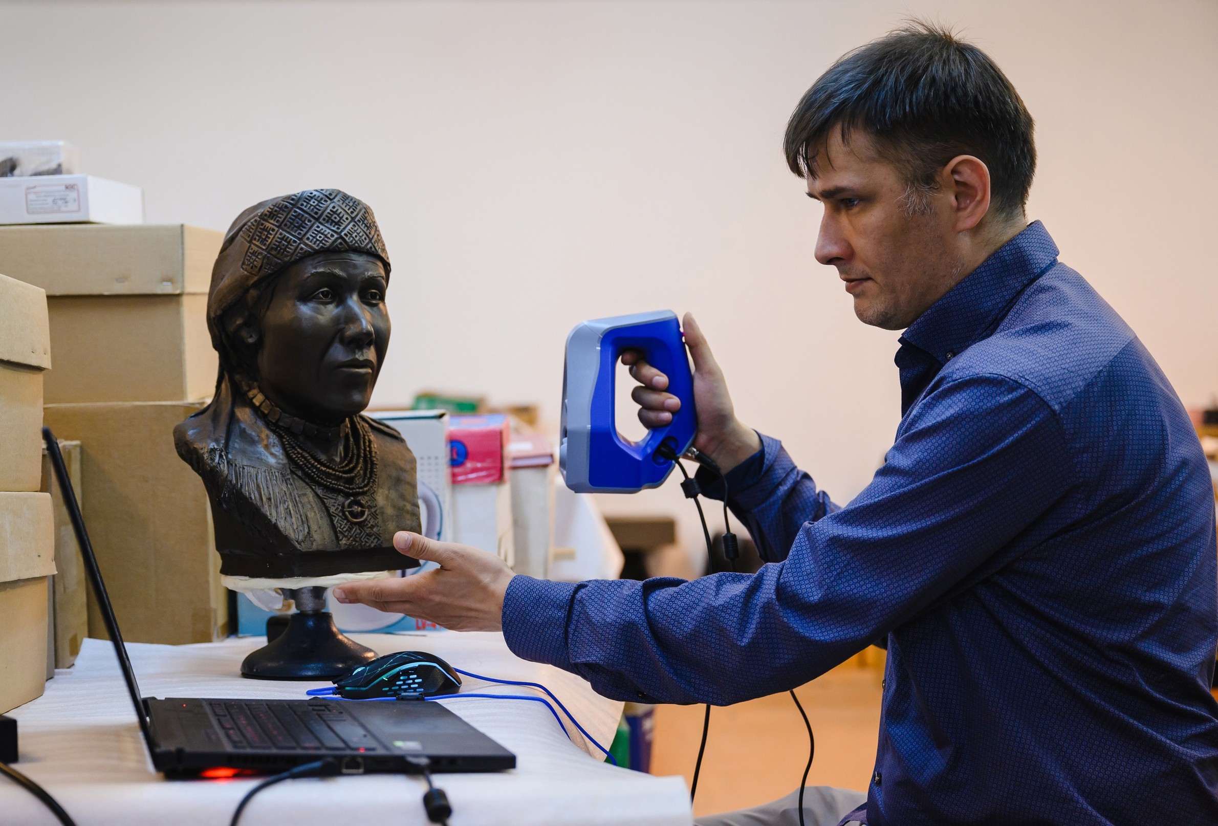 – На реконструкции всех образов понадобилось больше трех месяцев, — поделился антрополог. – Для работы мы сканировали не только черепа и гипсовые скульптуры, но и атрибутику из погребений, чтобы полнее представить этих людей и детализировать их изображения, – отметил Равиль Галеев.