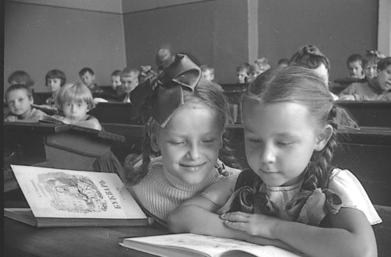 Первый урок в первом классе. 1952 г. Из фотофонда СОГАСПИ