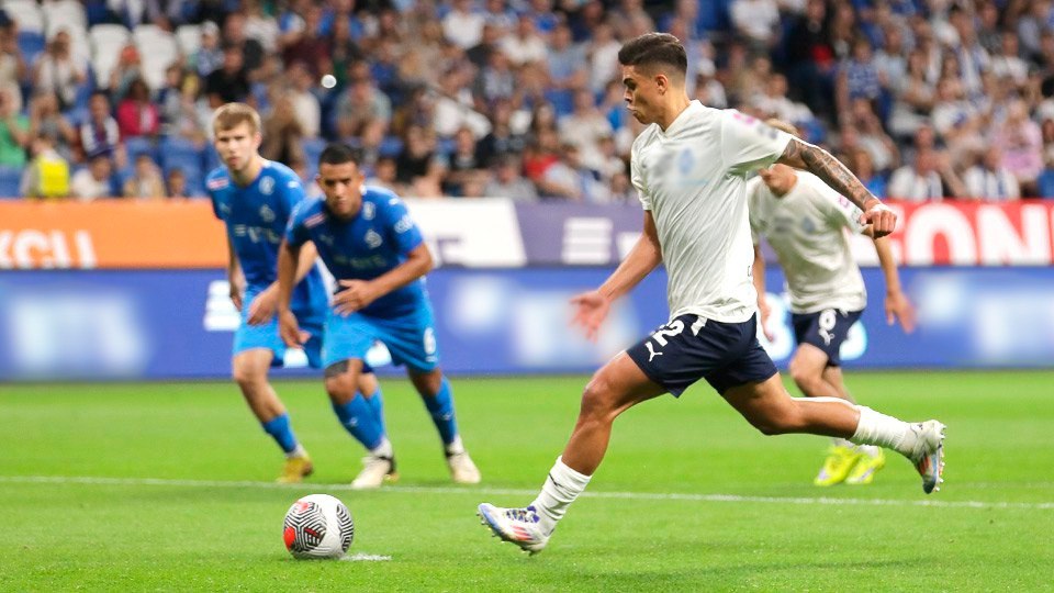 Виктор Окишор довел счет до 2:0 на 21 минуте игры. В конце первого тайма главный арбитр Евгений Буланов назначил пенальти в ворота «Динамо» за игру рукой Дениса Макарова в своей штрафной.