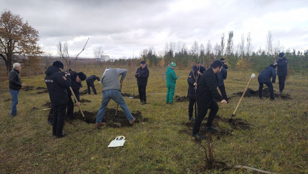 Сотрудники городского управления МВД посадили 15 каштанов в «Саду памяти» на улице Арена 2018 в честь погибших защитников Родины.