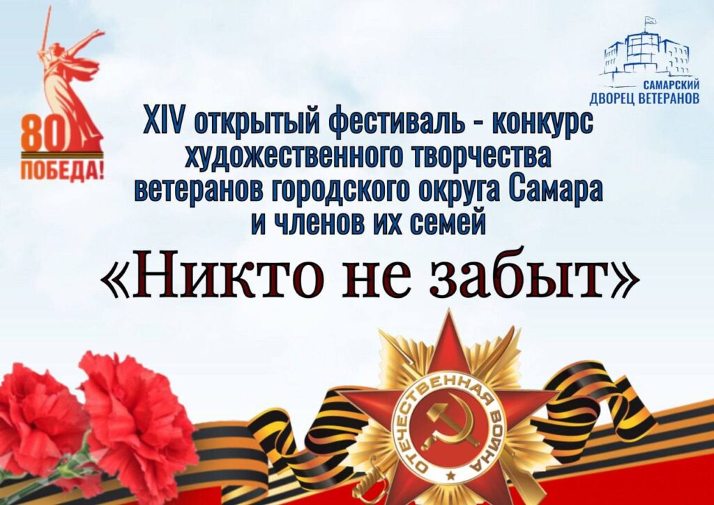 Самарцев приглашают поучаствовать в фестивале-конкурсе художественного творчества ветеранов и членов их семей «Никто не забыт», который посвящен 80-летию Победы в Великой Отечественной войне. Об этом сообщили в городской администрации.