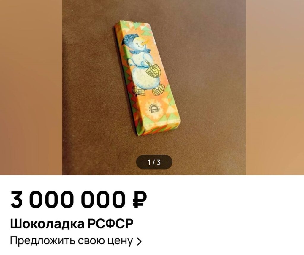 Самарец решил продать плитку шоколада времен РСФСР за 3 млн руб. Объявление он разместил на специализированном сайте.