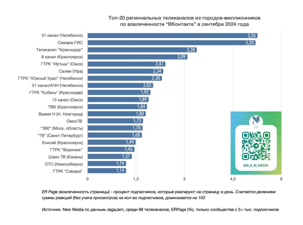 Рейтинг основан на анализе 68 сообществ телеканалов городов-миллионников с аудиторией 5+ тыс. подписчиков.