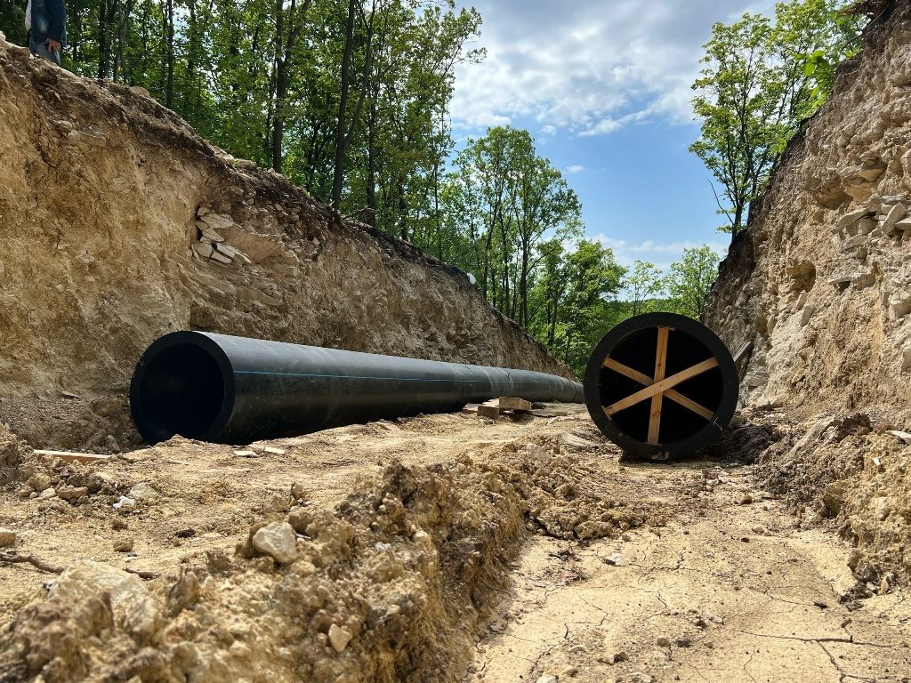 Специалисты провели пневматические испытания уже построенных участков, проверили трубы на прочность и герметичность. Сейчас обвязывают водопроводные камеры и запорную арматуру в местах соединений, поворотов и разветвлений.