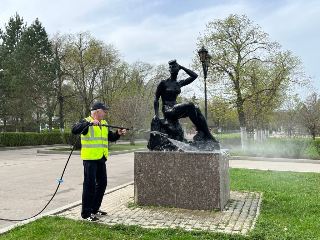 На очереди — самая большая композиция. Памятник основателю города князю Григорию Засекину отмоют в ближайшее время, используя гидроподъемник. Кроме помывки, памятник натрут специальными средствами. Это поможет сохранить его первоначальный вид, защитить от новых загрязнений, окисления.
