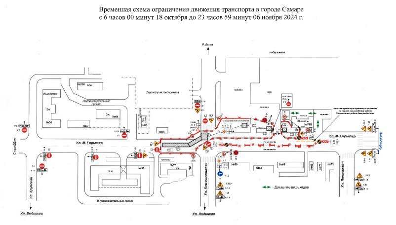 В Самаре с 06:00 18 октября до 23:59 6 ноября ограничат движение транспорта по улице Максима Горького, на участке от Комсомольской до Крупской.