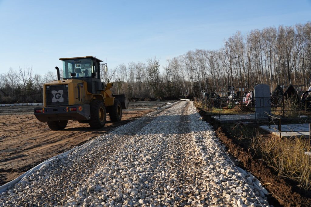 Подрядчик завершил подготовительный этап, включая расчистку, разработку грунта и планировку нового участка кладбища. Сейчас специалисты устанавливают опалубку, делают армирование и бетонирование дорожек, а также устройство песчано-щебеночного основания дороги.