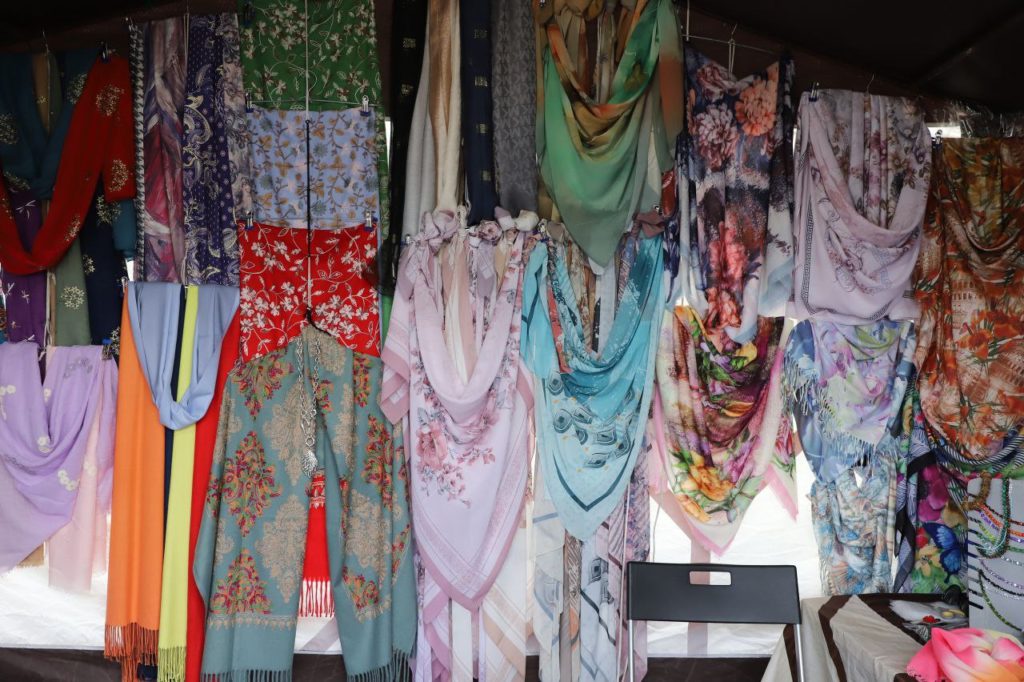 На четвертой очереди набережной около монумента «Ладья» развернулась Всероссийская ярмарка одежды, текстиля и продуктов питания. Отечественные производители из разных уголков страны предлагают купить свою продукцию. Тут представлены платья из натуральных тканей, изделия из кожи, украшения, постельное белье, косметика, а также мёд, орехи, сухофрукты и многое другое.