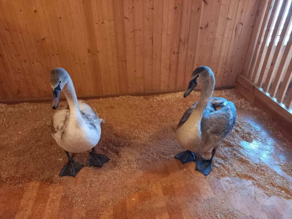 Парк 50-летия Октября пополнился двумя лебедями. Птиц-подростков привезли из Отрадного, где они жили на озере.