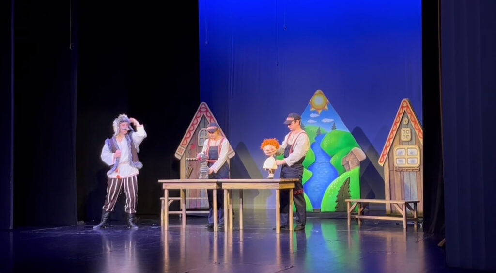 Представление прошло в Театре кукол, куда пригласили 240 детей. В фойе ребят ждали Дед Мороз, Снегурочка и Кот ученый. Все вместе они победили Снежную королеву, а потом отправились смотреть спектакль по мотивам сказки Бориса Шергина «Волшебное кольцо».