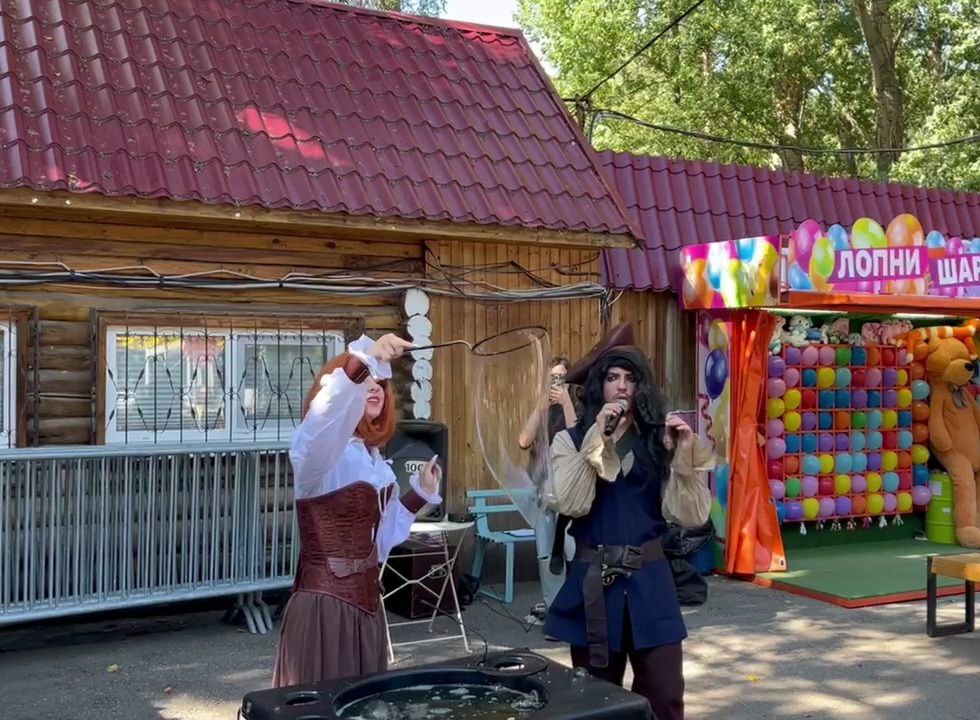 Для будущих школьников организовали развлекательную программу в парке Гагарина. Герои из фильма про пиратов отправились вместе с детьми в морское путешествие, искали клад и надували мыльные пузыри.
