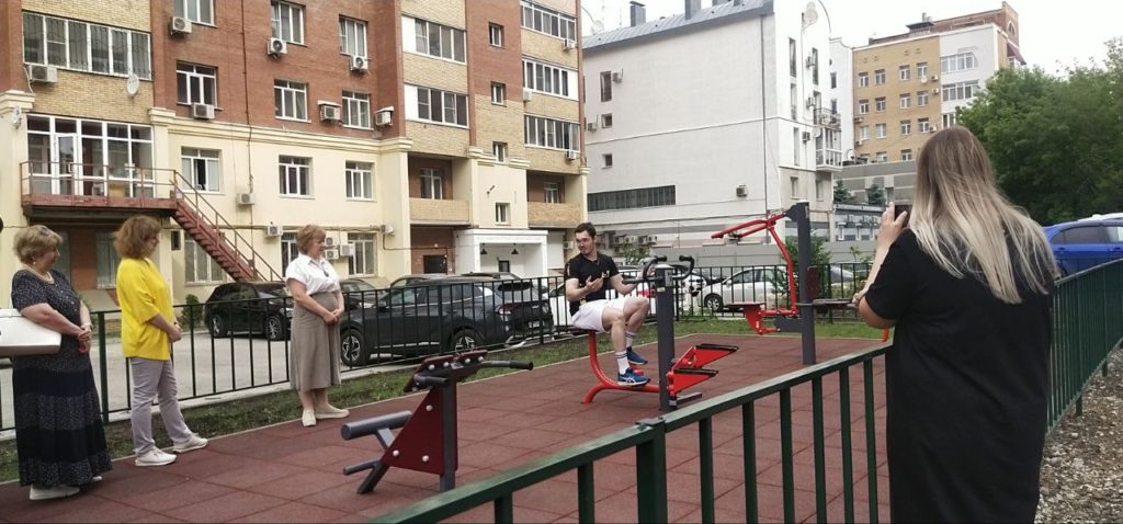 Объект оснастили спортивными тренажерами, турниками и лавочками. Постелили антитравматическое покрытие.