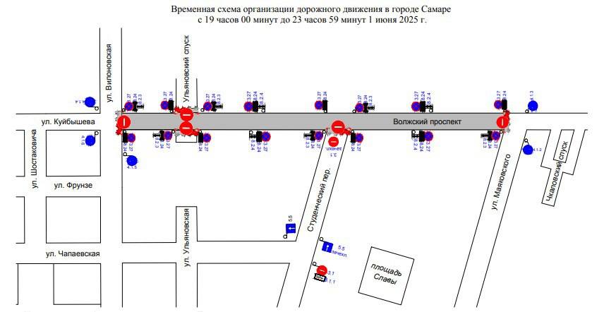 В Самаре с 19:00 до 23:59 1 июня временно ограничат движение транспорта на Волжском проспекте от Маяковского до Вилоновской. Об этом сообщили в городской администрации.