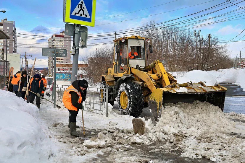 Расчистка улично-дорожной сети организована непрерывно, в две смены. Чтобы не создавать дискомфорт участникам дорожного движения, снежные валы вывозят ночью. С начала февраля на площадки складирования вывезли около 63 тысяч тонн снега.