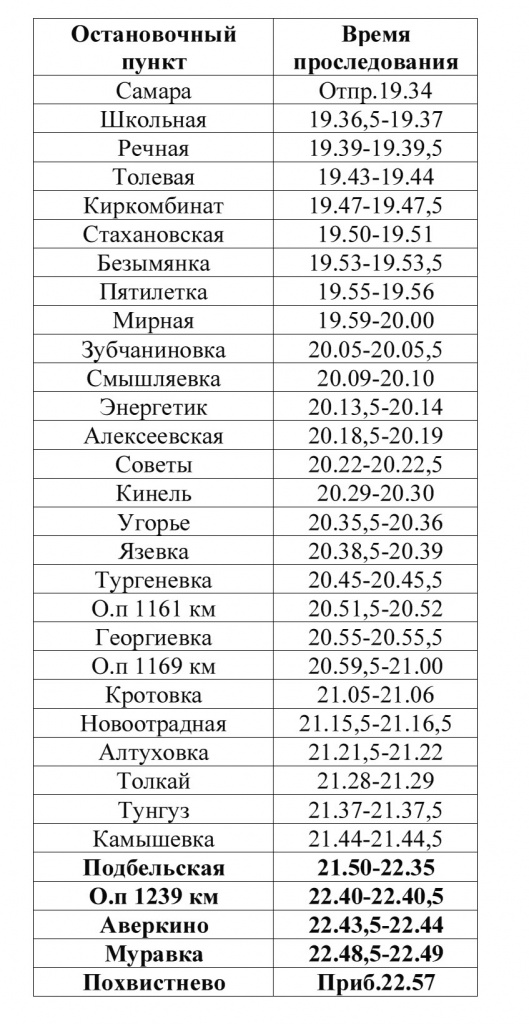 Так, поезд №7528 Самара – Похвистнево отправится по обычному расписанию в 19:34, а на конечную станцию прибудет в 22:57 вместо 22:13.