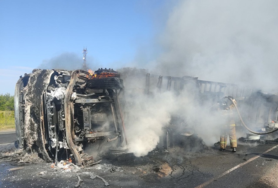 В среду, 25 июня, в Самарской области на 301 км трассы М-5 «Подъезд к Ульяновску» из-за ДТП загорелась фура. Об этом сообщили в региональном ГУ МВД.