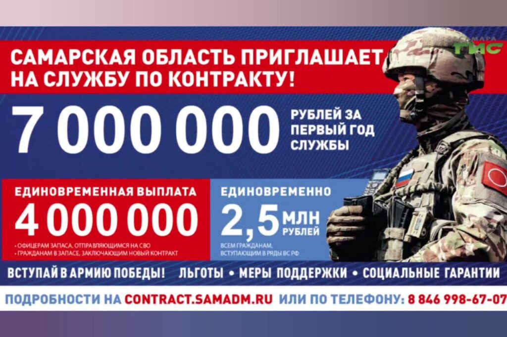 В Самарской области при заключении контракта с Минобороны РФ единовременно выплачивают 4 000 000 руб. офицерам запаса, отправляющимся на СВО, и гражданам в запасе, которые заключают новый контракт. Всего за первый год службы сумма составит 7 000 000 руб. Всем остальным гражданам, вступающим в ряды российской армии, выплатят 2 500 000 руб.