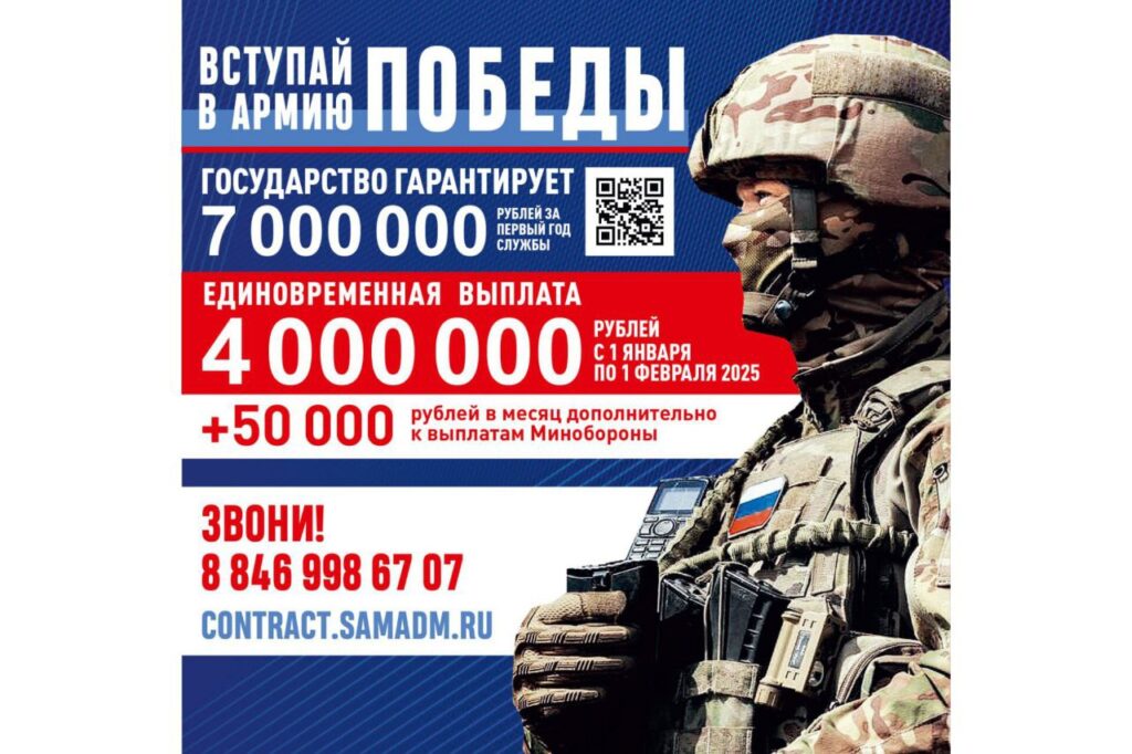 В Самарской области при заключении контракта с Минобороны РФ с 1 января по 1 февраля 2025 года будут единовременно выплачивать 3 600 000 руб. Такое решение принял губернатор Вячеслав Федорищев.