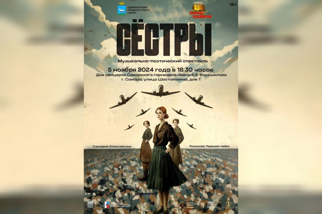 Во вторник, 5 ноября, в Доме офицеров Самарского гарнизона имени Ворошилова состоится показ музыкально-поэтического спектакля «Сестры». Начало в 18:30, продолжительность — 1 час 20 минут. Проект реализуется при поддержке президентского Фонда Культурных Инициатив.