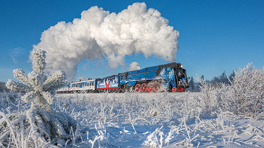Поезд Деда Мороза путешествует уже с ноября. Состав отправился из Великого Устюга и будет в пути до середины января. Главные новогодние герои побывают более чем в 80 российских городах.