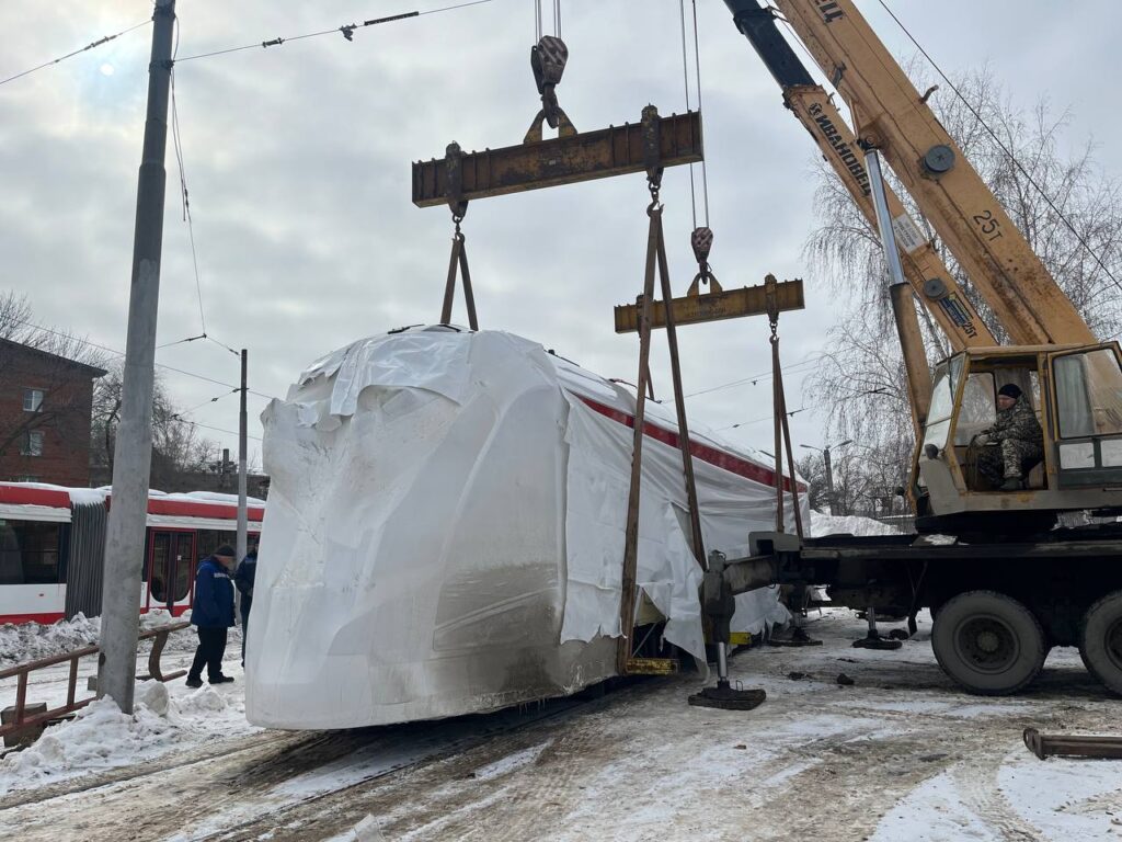 В пятницу, 28 февраля, в Самару доставили еще три новых трамвая «Львенок».