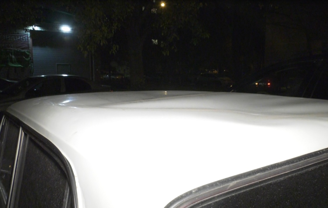 Едем дальше. В темных дворах Промышленного района стражи порядка замечают молодых людей, которые прыгают по крыше отечественной легковушки.