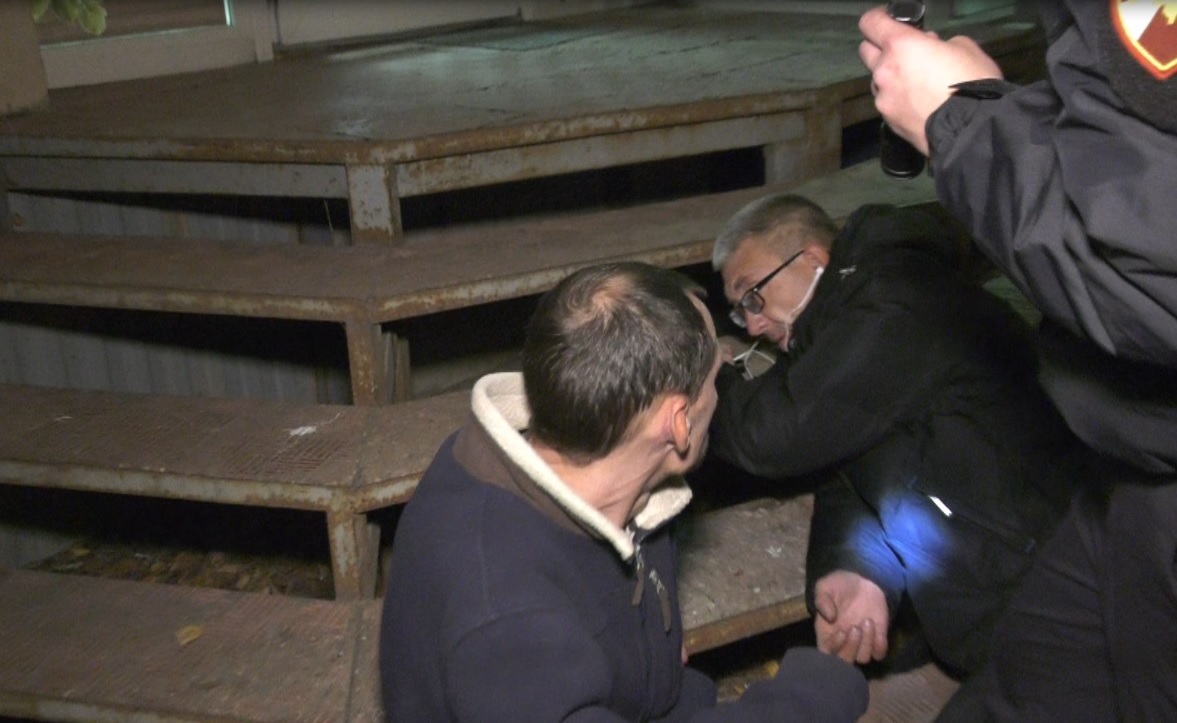Следующий инцидент оказался куда более серьезным. На ступеньках одного из алкомаркетов двое мужчин — один из них лежит лицом вниз, не двигается. Узнаем, что произошло. Оказывается, 42-летний местный житель перебрал с горячительными напитками.