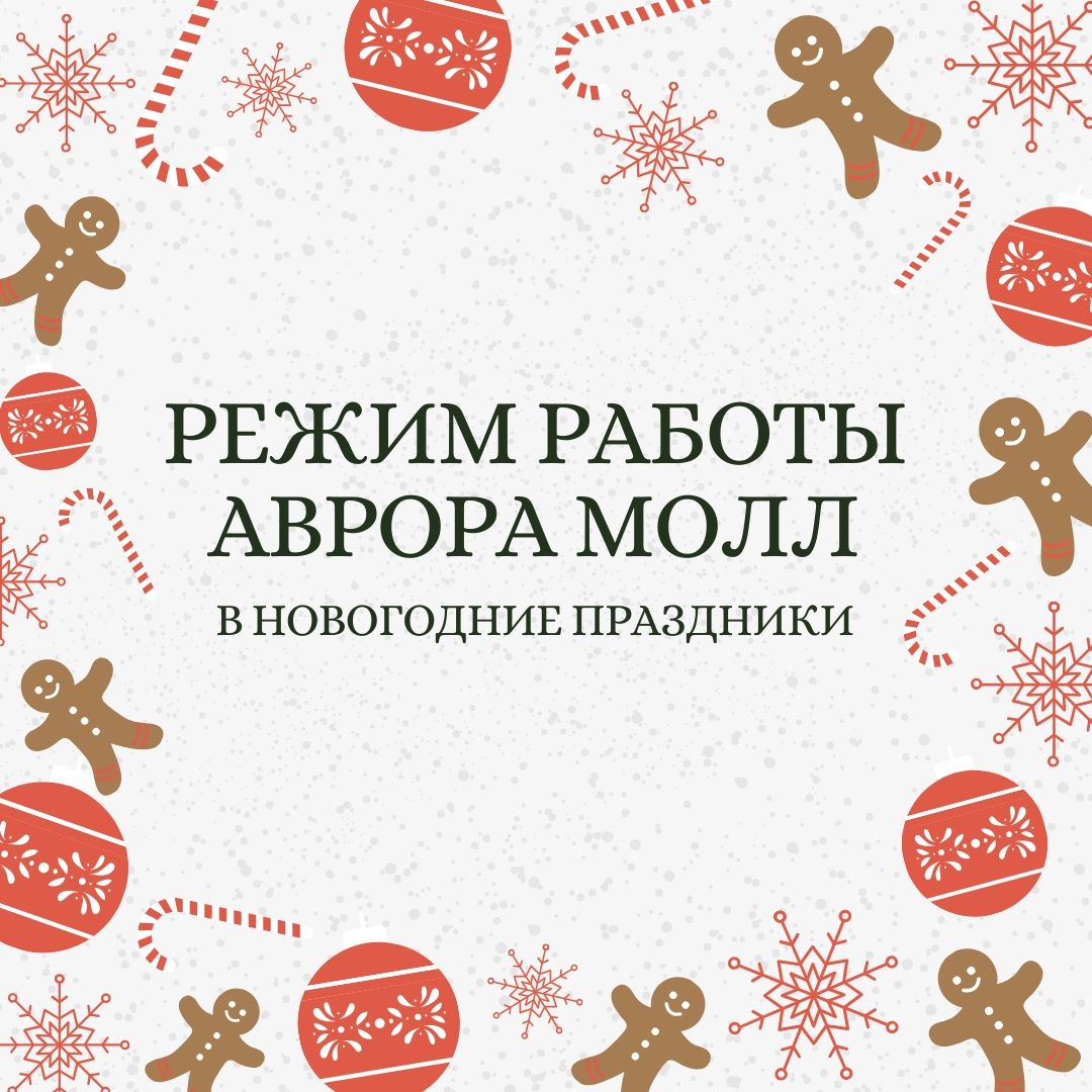 В новогодние праздники Аврора Молл будет работать следующим образом: