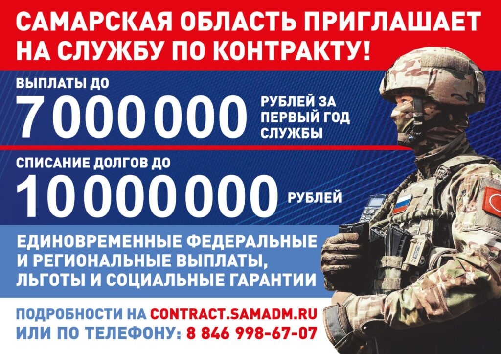 Жителей Самарской области приглашают на службу по контракту. За первый год службы выплатят до 7 000 000 руб.