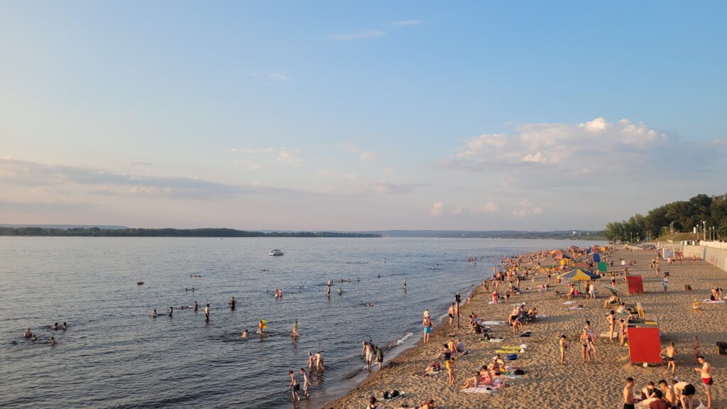 - Пляж в Красноглинском районе, за дамбой на острове Серный.